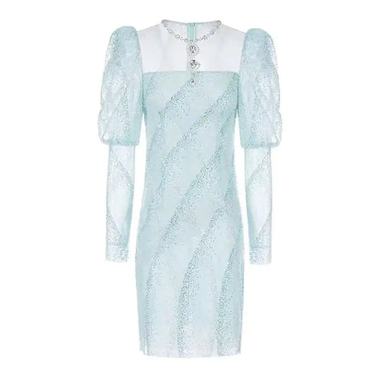 Rhinestone Puff Sleeve Jumpsuit with Short Skirt