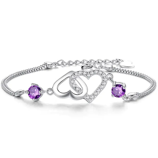 S925 Silver Heart-Shaped Amethyst Bracelet