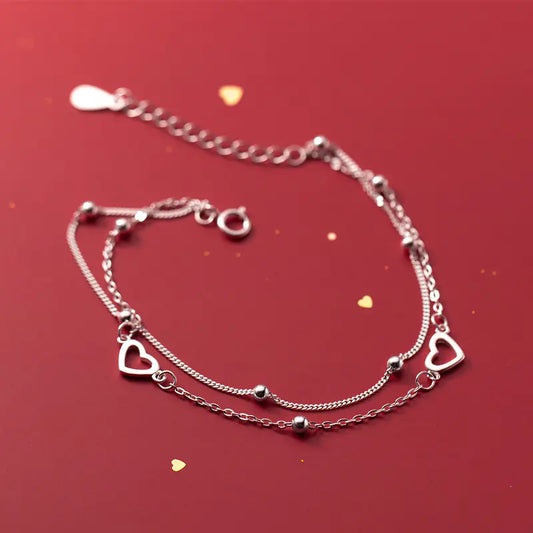 S925 Silver Double Layer Heart Bracelet