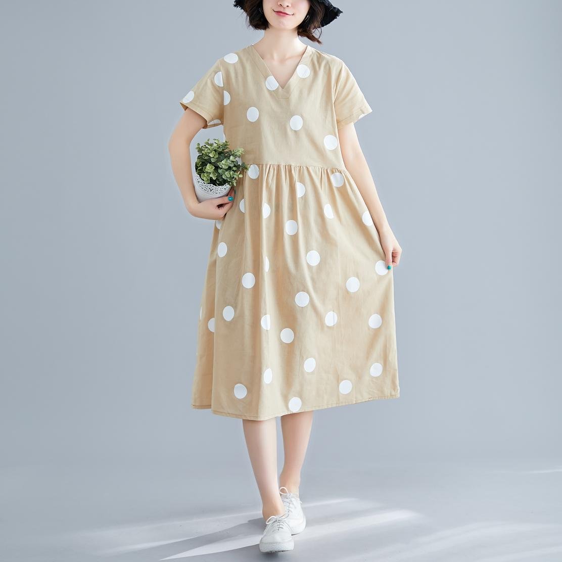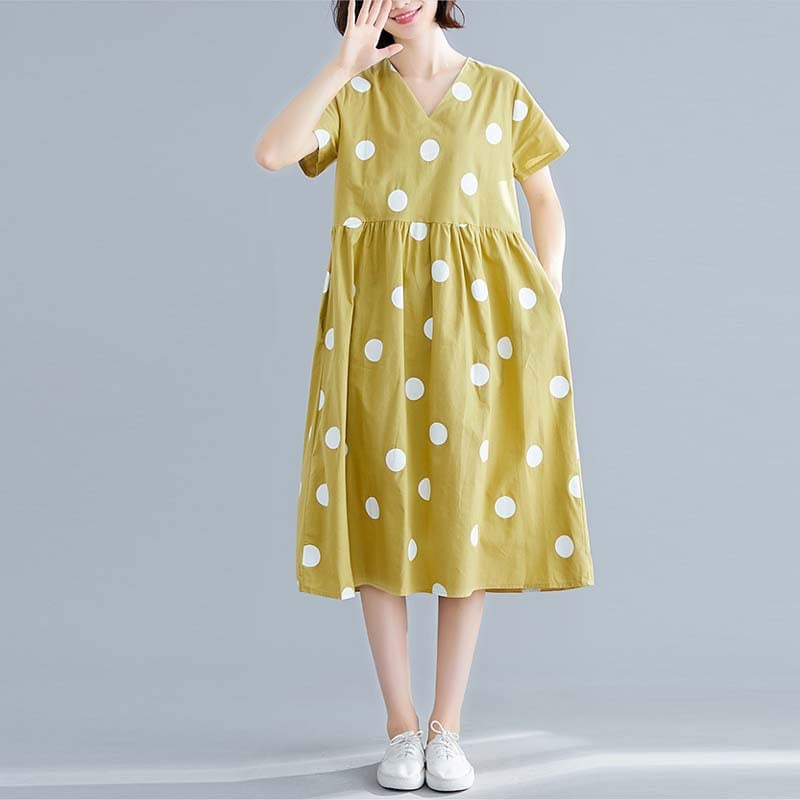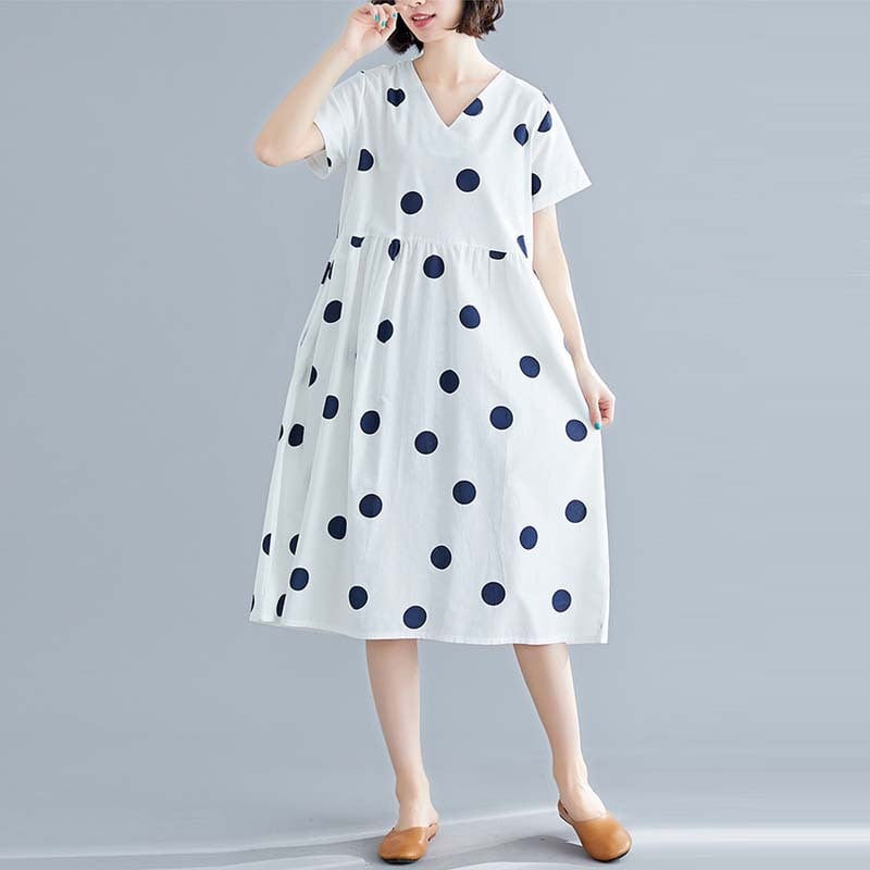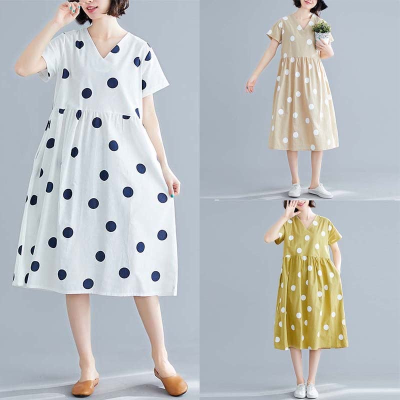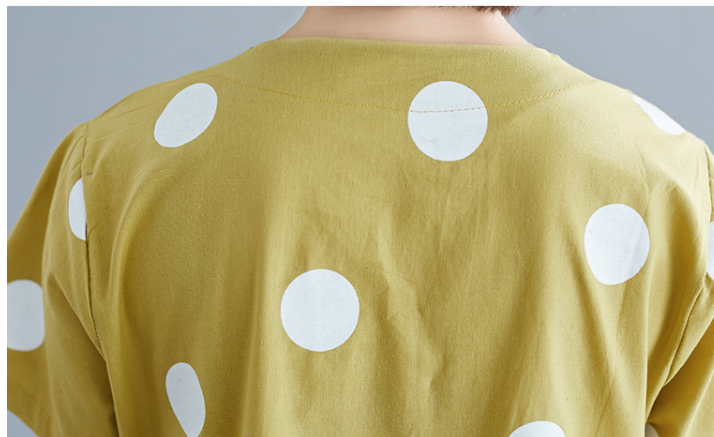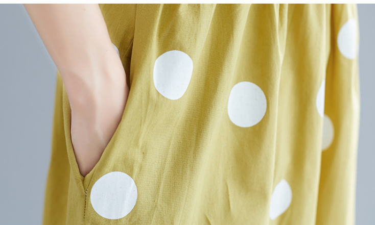 Don’t miss out on the chance to elevate your wardrobe with this essential piece! Grab your Dot Print Cotton Linen V-Neck Short Sleeve Dress today and embrace a style that’s as dynamic as you are.
