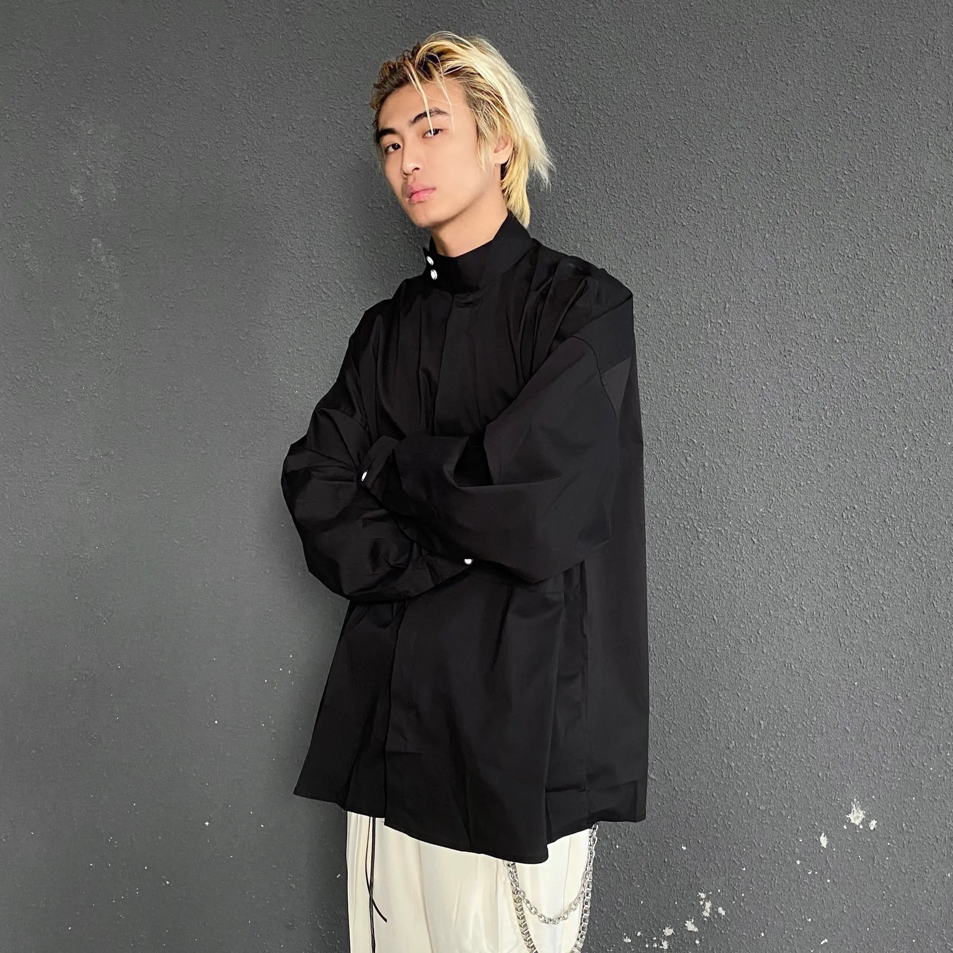 Discover the perfect blend of style and comfort with our Korean-inspired Spring Basic Shirt. Designed for the modern man, this loose-fitting shirt features a chic stand-up collar and is made from lightweight fabric, making it ideal for layering during the transitional seasons.