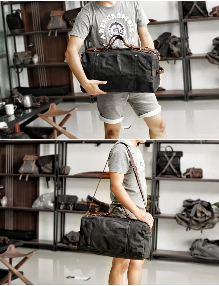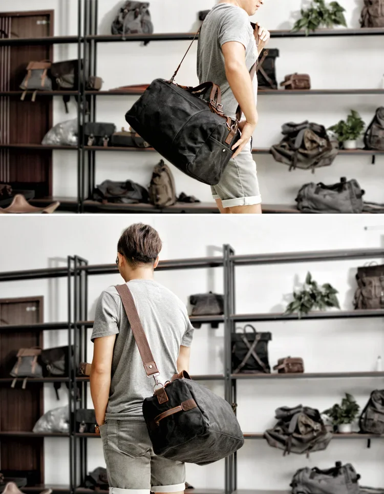 Retro Waxed Canvas Gym Duffel Bag for Men