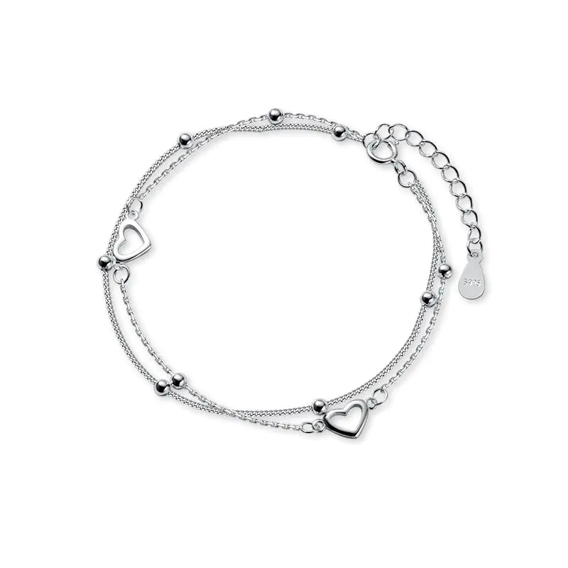 Indulge in the elegance of our S925 Silver Sweet Double Layers Loving Heart Bracelet, a stunning piece that beautifully encapsulates the essence of love. Crafted with precision, this bracelet features a heart shape design, making it the perfect accessory for those who cherish meaningful connections.