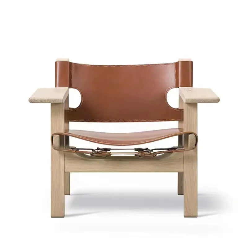 Spanish Chair Solid Wood Vintage Leather Sofa Chair